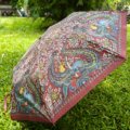 Maroon kalamkari print three fold umbrella
